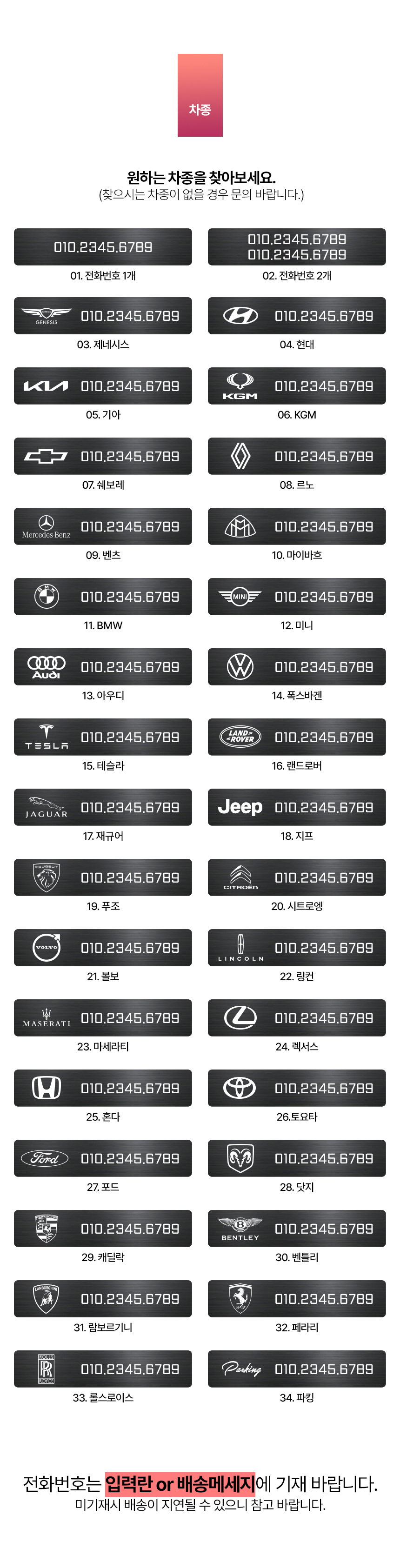 • 베젤리스 메탈 주차번호판